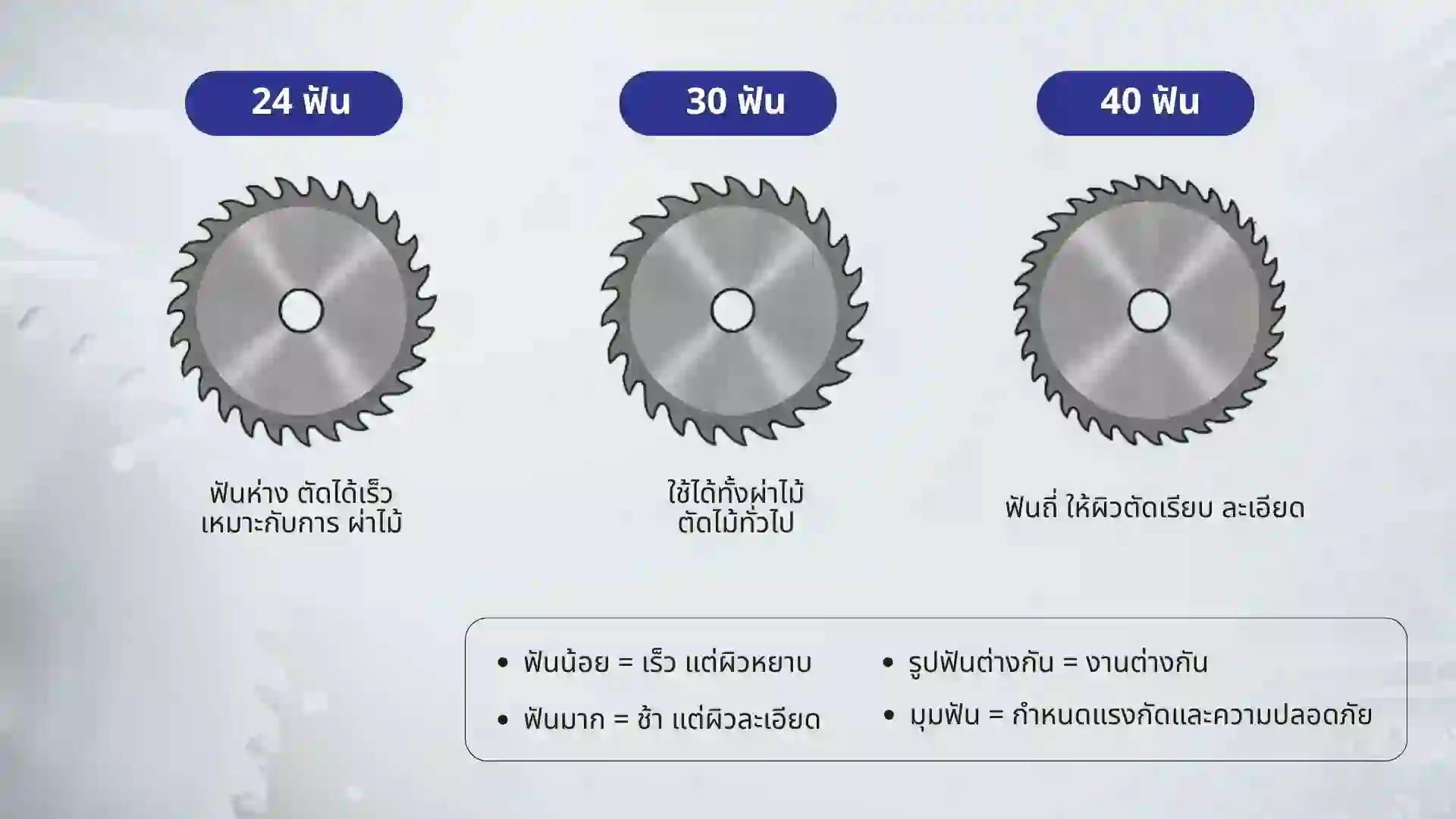 40 ฟัน เหมาะสำหรับตัดไม้ ได้ผิวเรียบเนียน ละมุนละไม ปราณีต