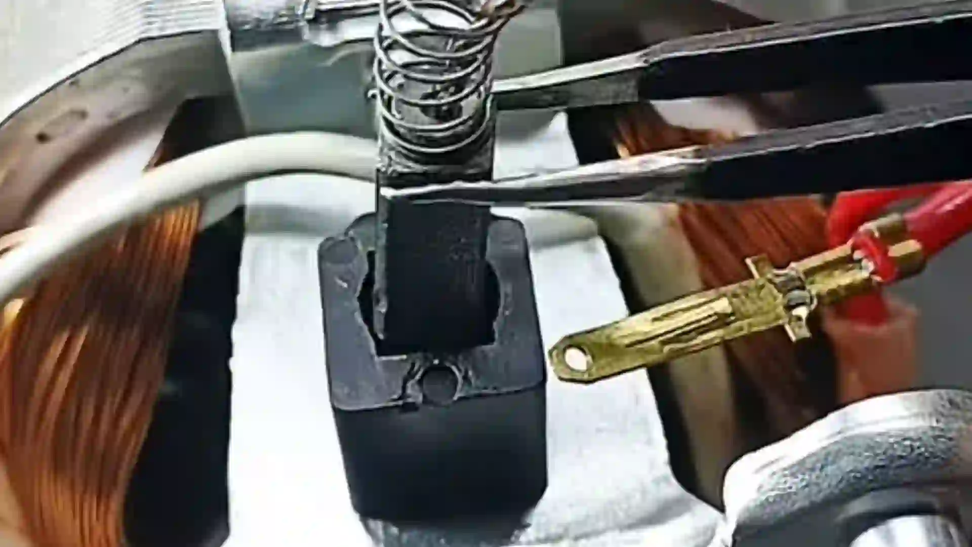 7. ใส่แปรงถ่านใหม่เข้าไป โดยใส่ด้านที่มีขั้วทองแดงเข้าด้านในซองถ่าน และนำด้านเนื้อถ่านคาร์บอนไว้ฝั่งคอมมิวเตเตอร์