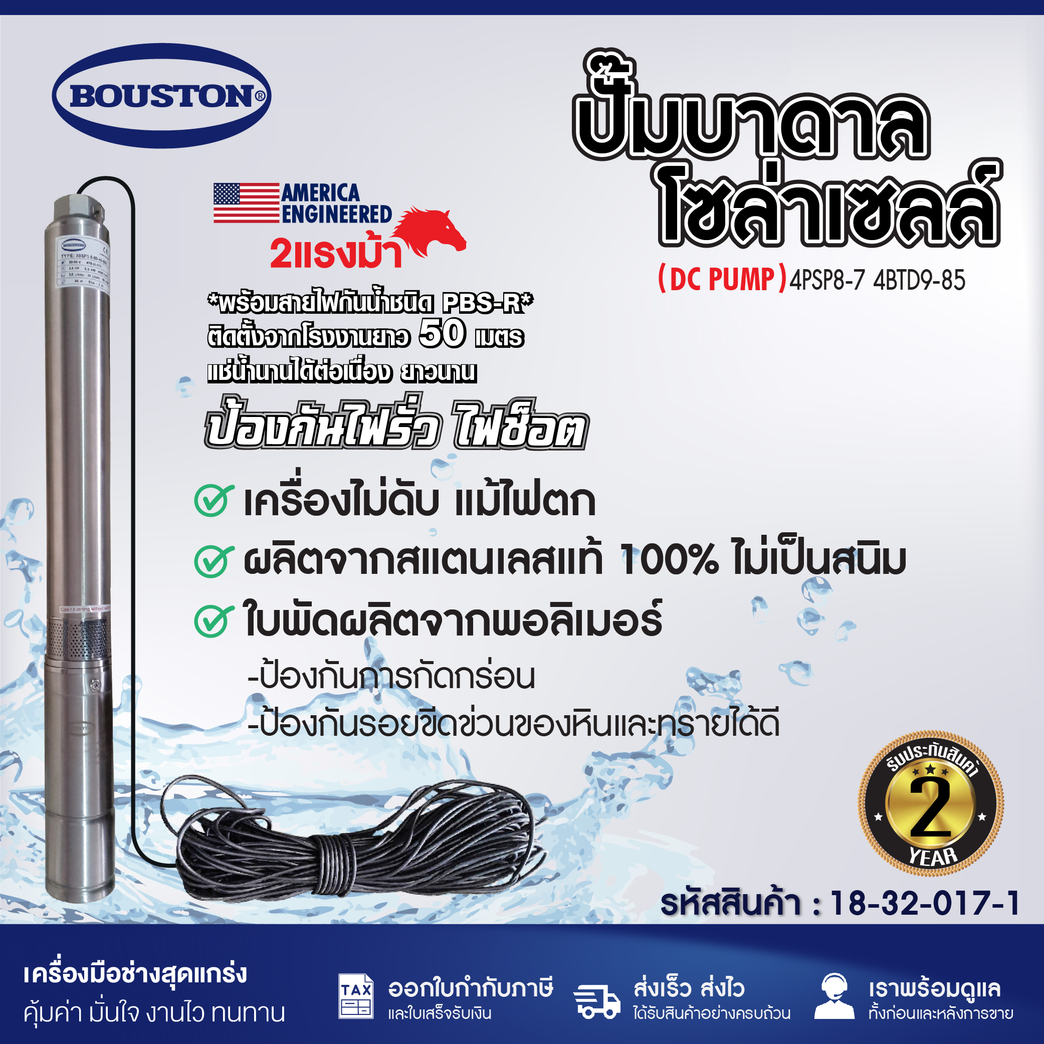 ปั๊มบาดาลโซล่าเซลล์ BOUSTON รุ่น 4PSP8-7 4BTD9-85