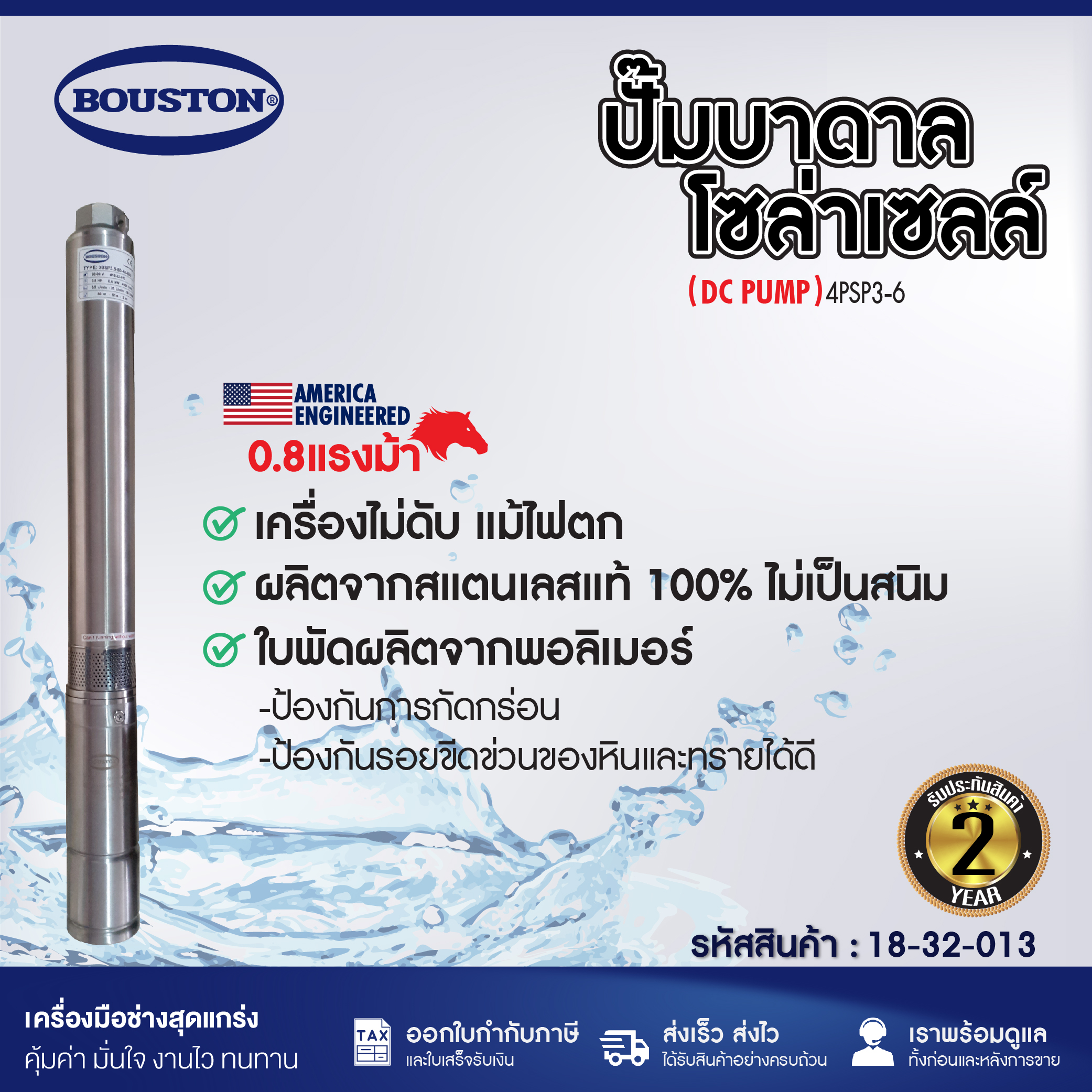 มาเป็นคนแรกที่วิจารณ์ “ปั๊มบาดาลโซล่าเซลล์ BOUSTON รุ่น 4PSP3-6”